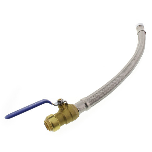 1/2″ Push-Fit Ball Valve x 3/4″ FIP Braided Water Heater Connector, 18″ Length