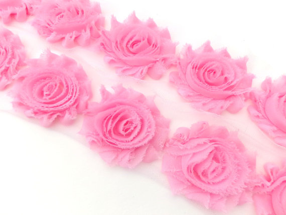 1/2 YARD Shabby Chiffon Flower Rosette Rose Trim in Pink