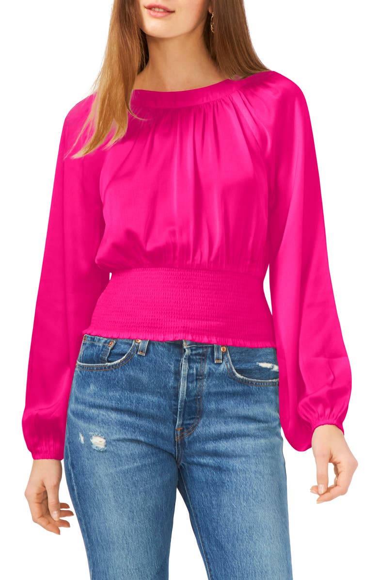 1.STATE Satin Smocked Waist Blouse, Main, color, VENICE PINK