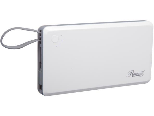 10000 mAh Portable Slim Power Bank Charger with Built-in Cable, USB-C and Micro-USB Outputs, White Matte Finish, LED Battery Indicator (RBPB-20009)