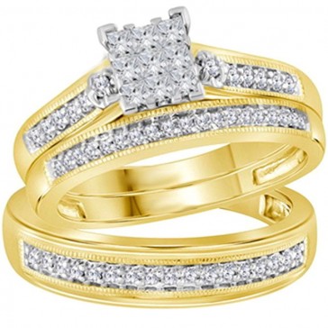 10K Gold Wedding Trio Rings Set Princess Cut Diamonds His and Her 3pc 1/2ctw