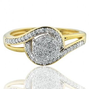 10k Yellow Gold Swirl Halo Engagement ring with 1/4 Cttw Diamonds