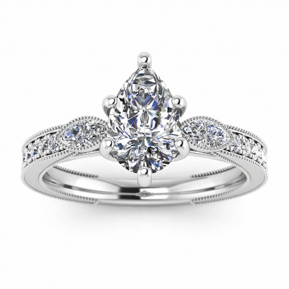 14k White Gold Allegria Shiny Milgrained Pear Shaped Diamond Ring (1/3 CT. TW.)