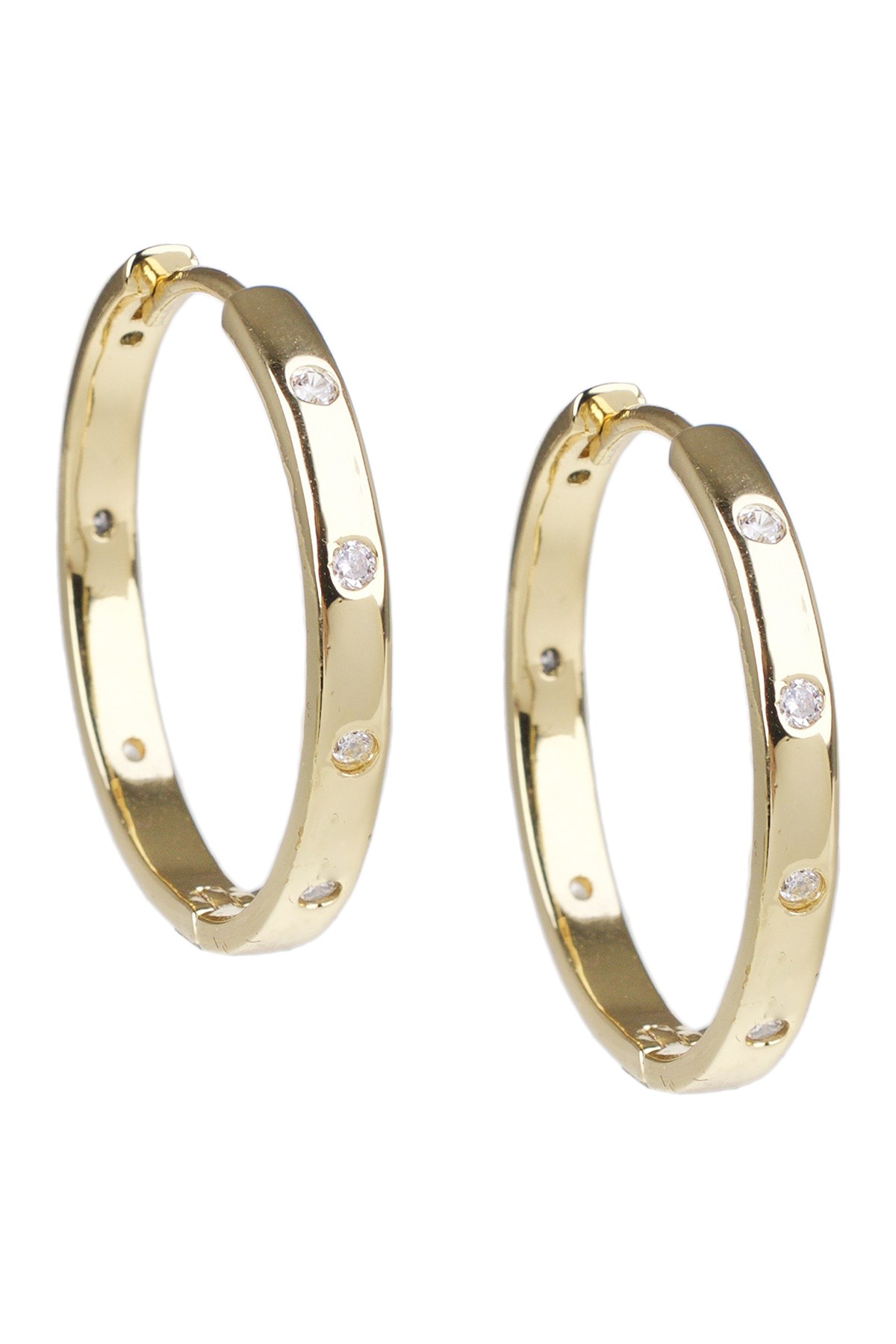 18K Gold Plated Round Cubic Zirconia Detail 1" Huggie Earrings