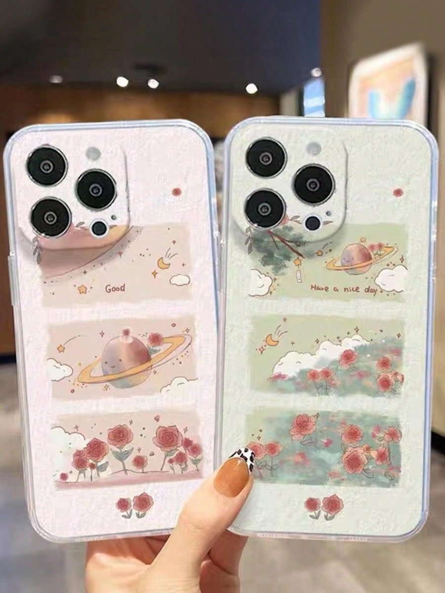 2 Piece Flower Planets Pattern Anti fall Phone Case