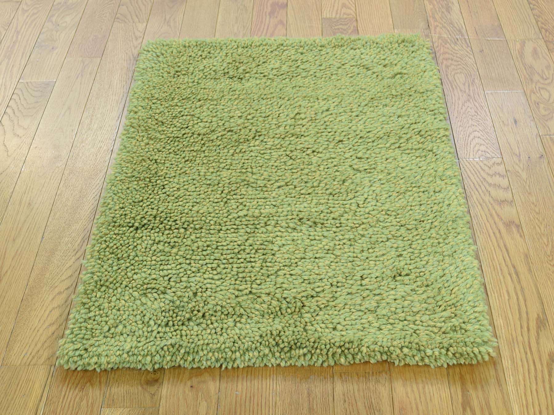 2'x3'1" Hand Knotted 100 Percent Wool Green Gabbeh Oriental Rug