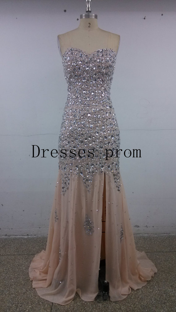 2014 latest long chiffon prom dresses with rhinestones,cheap sparkly gowns for holiday party,chic elegant evening gowns on sale.