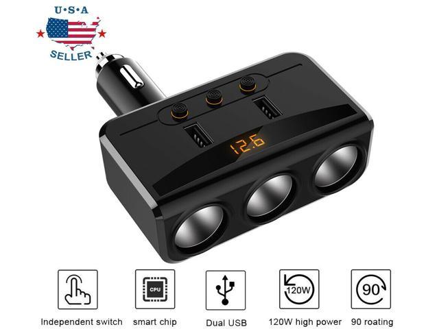 3-Port Dual USB Car Charger Adapter LED Display Fast Charging for Android / IOS - Newegg.com