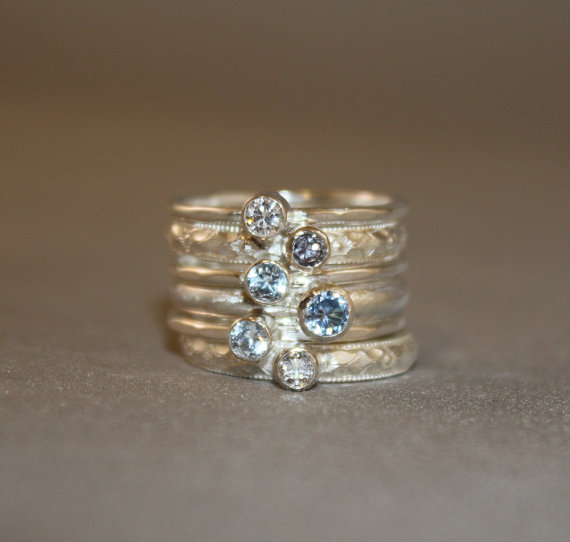6 Gemstones, Birthstone Mother's Stacking Ring set, 6 rings, Argentium and sterling silver stacking rings, Custom made