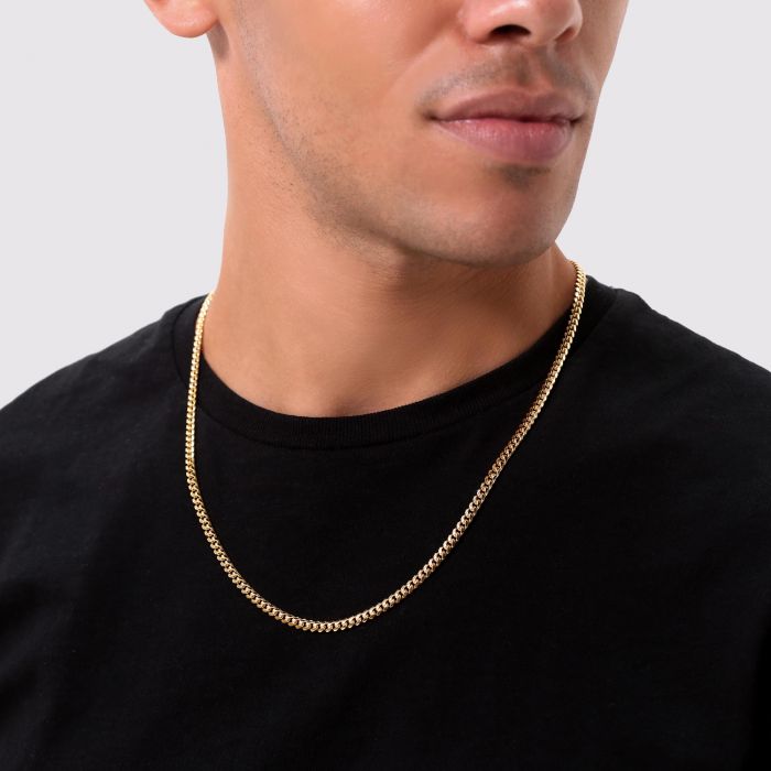 9ct Yellow Gold Plated Sterling Silver 4.2mm Diamond Cut Cuban Chain