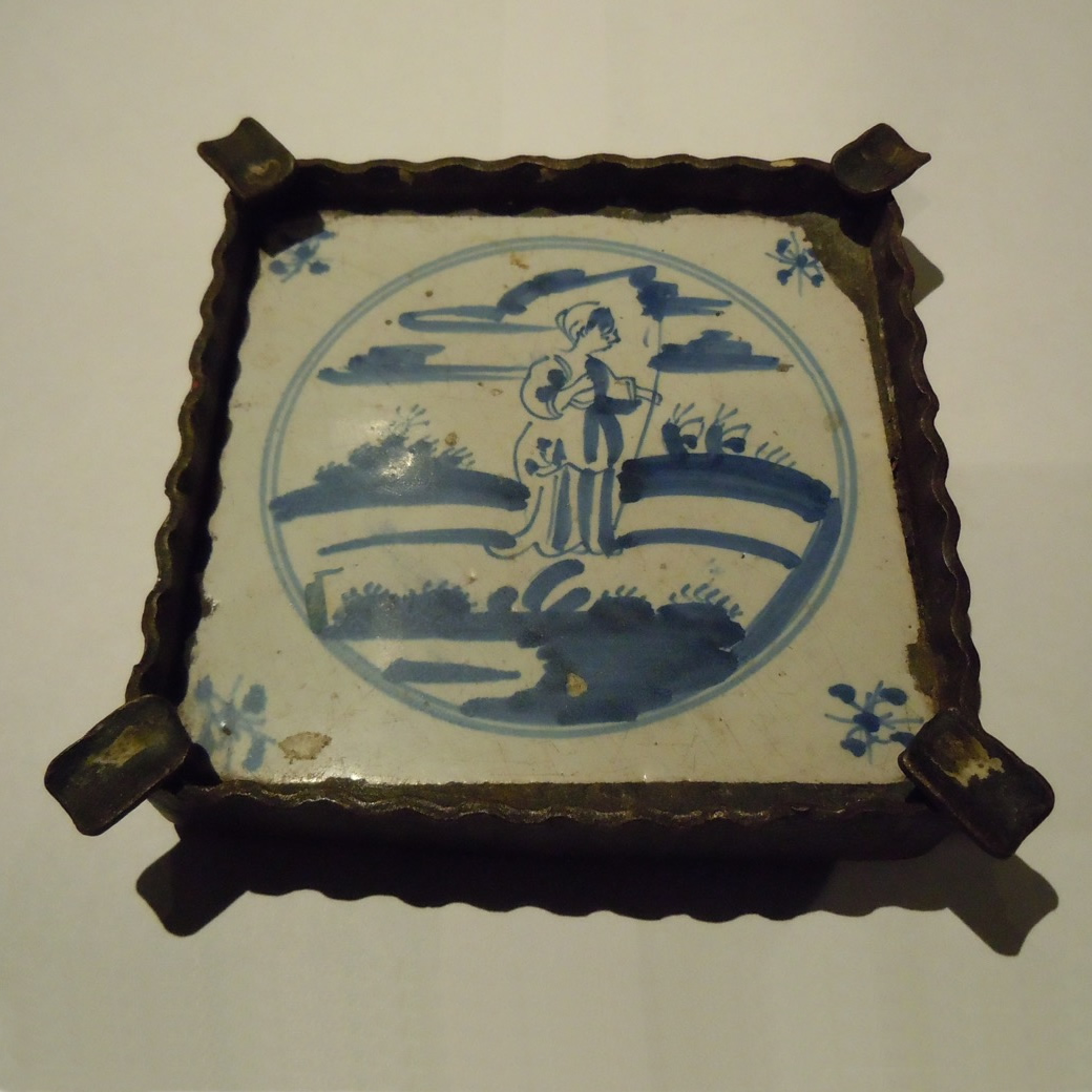A 17th Century Blue & White Delft Tile Later Set Into An Ashtray