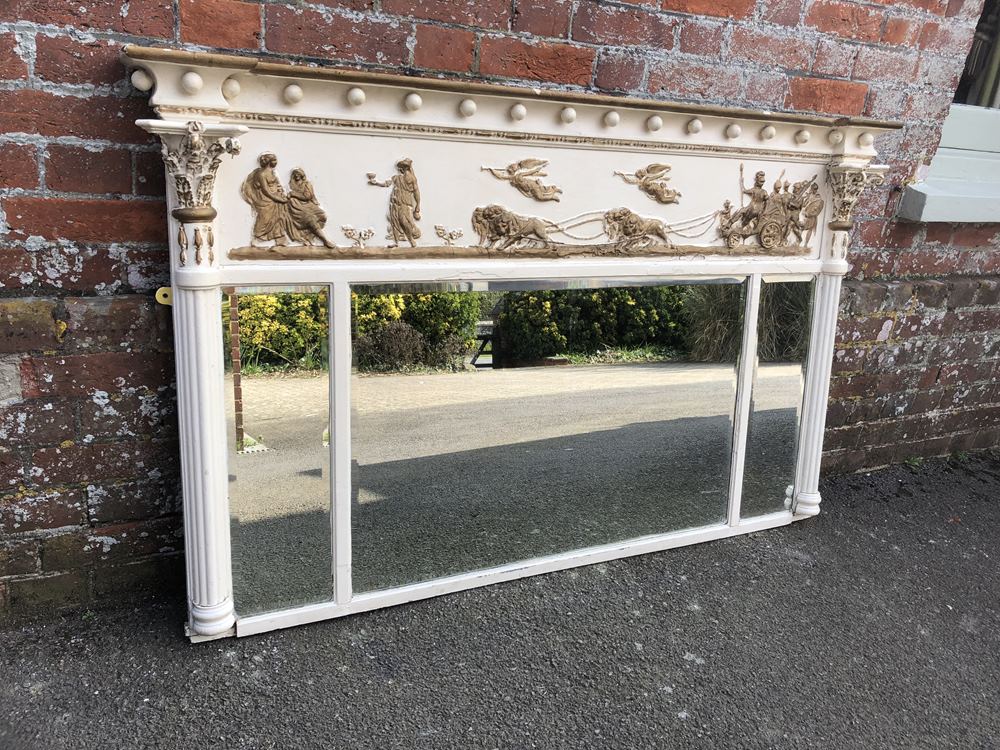A Fabulous good size Antique English carved wood & gesso painted triple plate Mirror.