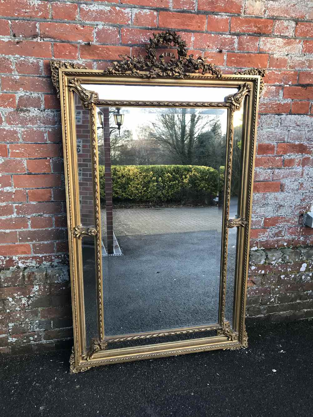 A Fabulous large Antique 19th Century French carved wood and gesso original gilt cushion Mirror.