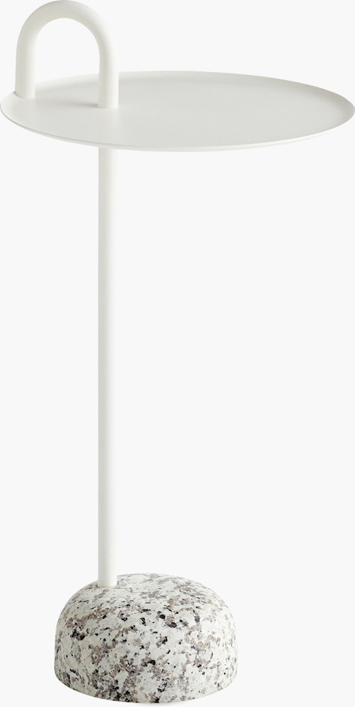A front view of the Bowler Side Table in white with a granite base.