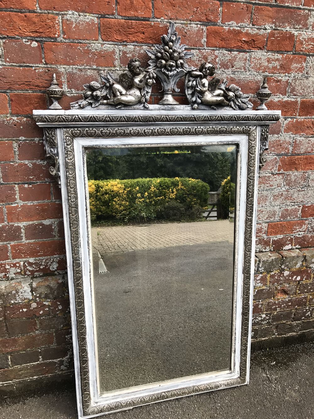 A Highly decorative Antique 19th Century French carved wood & gesso original silvered and painted Mirror.