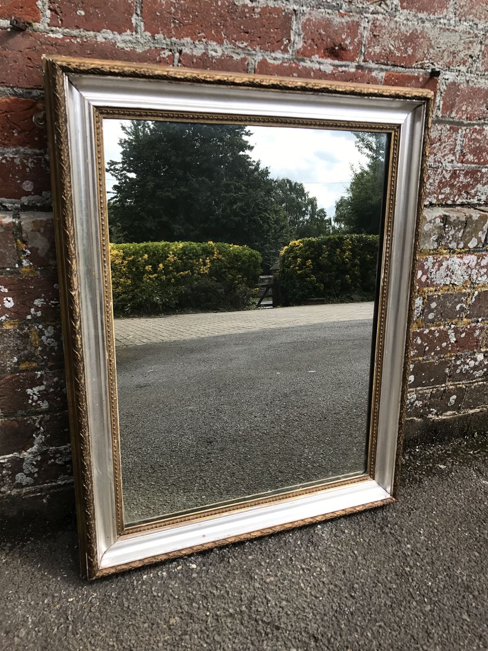 A Highly useful size Antique 19th Century French carved wood & gesso original silver/gilt Mirror.