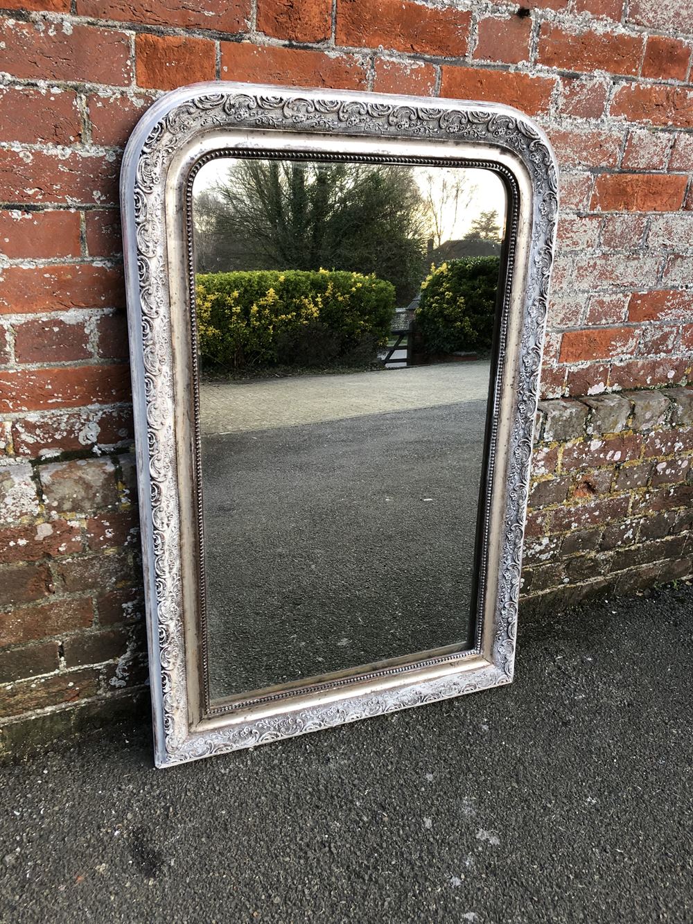 A Highly useful size Antique French 19th Century carved wood and gesso arched top original silvered and painted Mirror.