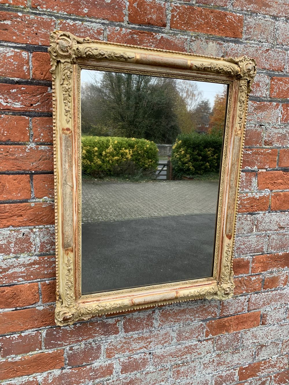 A Highly useful size Antique French 19th Century carved wood & gesso original gilt painted Mirror.