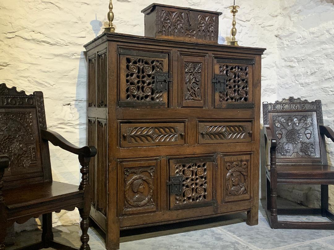 A MAGNIFICENT AND RARE ENGLISH OAK TUDOR AUMBRY. CIRCA 1520.