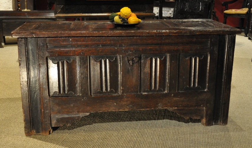 A MID 16TH CENTURY OAK LINENFOLD CHEST. CIRCA 1550.