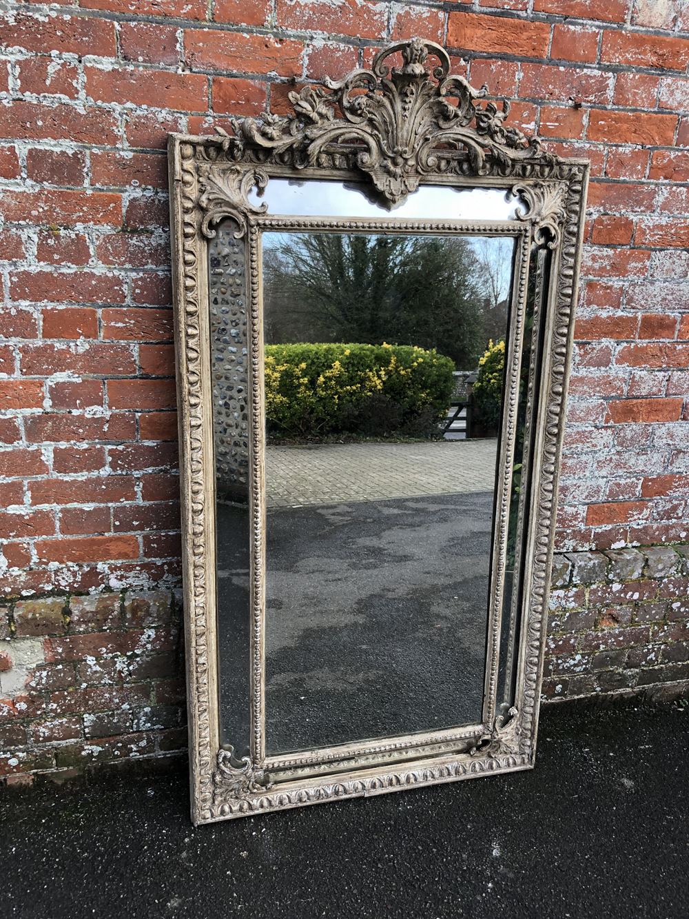 A Spectacular Antique French 19th Century carved wood & gesso painted Cushion Mirror.