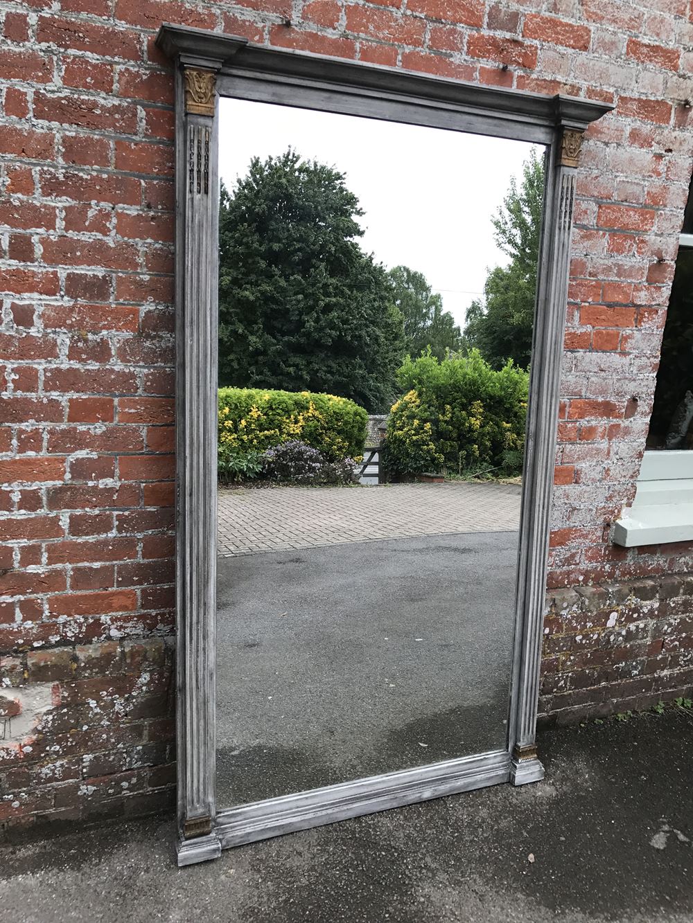 A Spectacular Large Antique 19th Century French carved wood column ribbed framed Mirror.