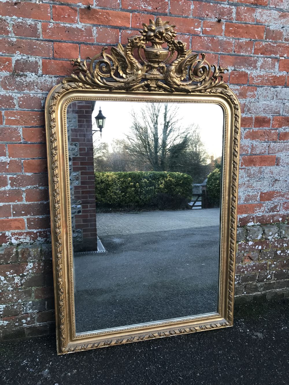 A Stunning large Antique 19th Century French carved wood & gesso original arched top gilt Mirror.