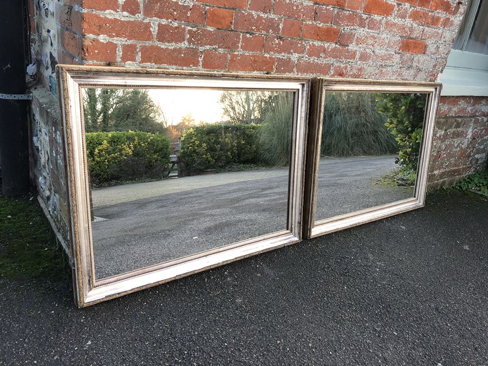 A Superb Pair of Antique French 19th Century wood & gesso original silver/gilt Bistro Mirrors.