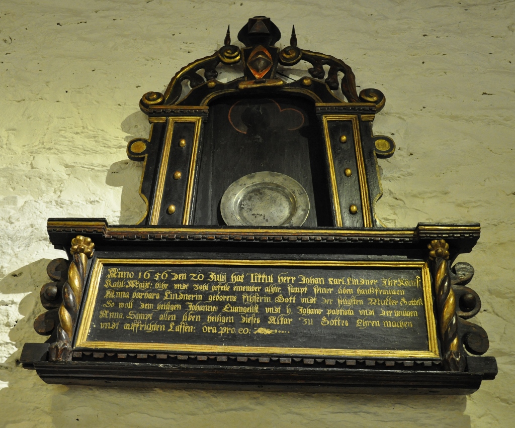 A VERY ATTRACTIVE MID 17TH CENTURY SOUTH GERMAN CARVED AND GILDED HANGING ALTAR. DATED 1656.