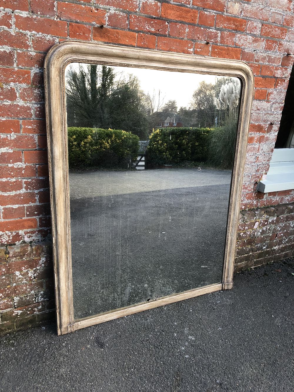 A Wonderful large Antique French 19th Century carved wood & gesso arched top painted Louis Philippe Mirror.