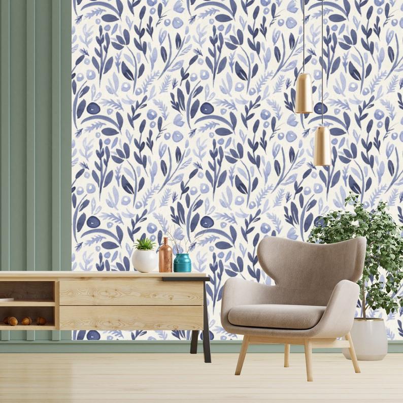 Abstract Blue Leaves Peel And Stick Wallpaper Mural Wall image 0