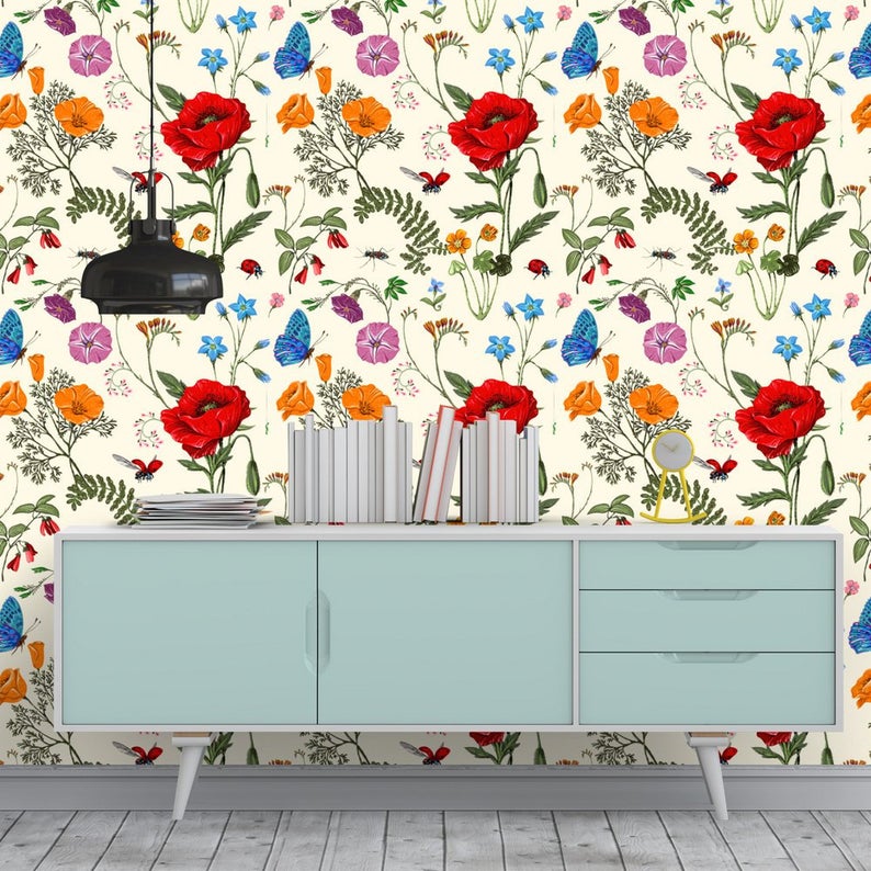 Abstract Flowers Watercolor Wallpaper Traditional Non woven image 0