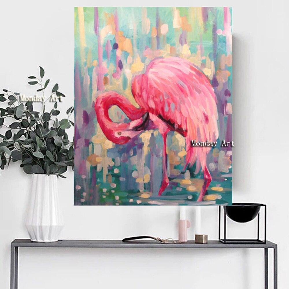 Abstract Hand Painted impressionism Egret oil painting canvas wall art the crane original animal oil painting