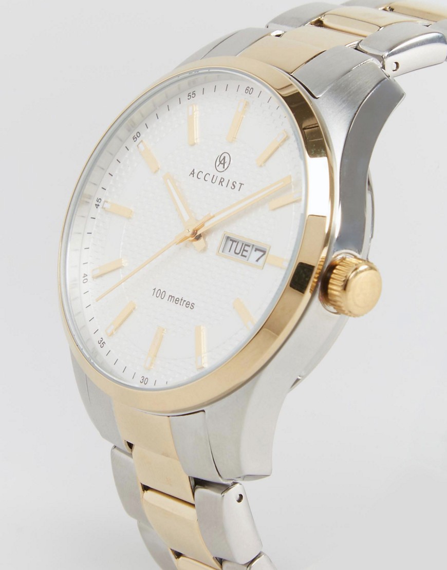 Accurist Mixed Metal Bracelet Watch With White Dial