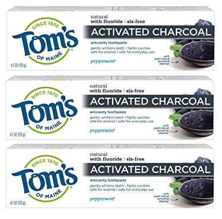 Activated Charcoal Toothpaste, Natural Toothpaste, Peppermint with Fluoride, 4.7 oz 3 Pack