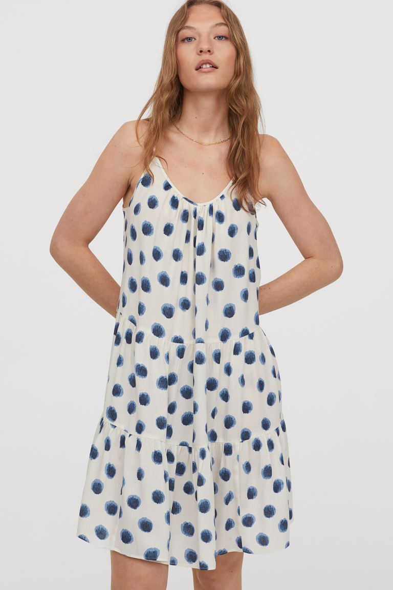 Airy Dress - White/blue patterned - Ladies