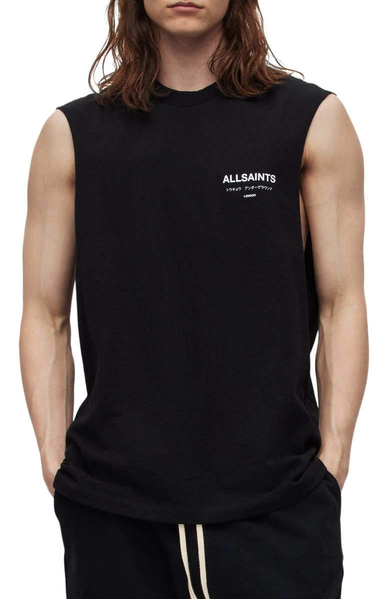 AllSaints Underground Crewneck Sleeveless T-Shirt, Main, color, Jet Black