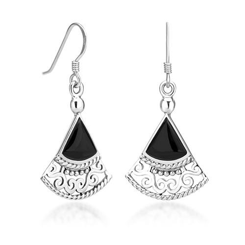 Amazon.com: 925 Sterling Silver Filigree Bali Inspired Black Onyx Gemstone Triangle Fan Dangle Earrings 1.5'' Fashion Jewelry for Women - Nickel Free: Jewelry