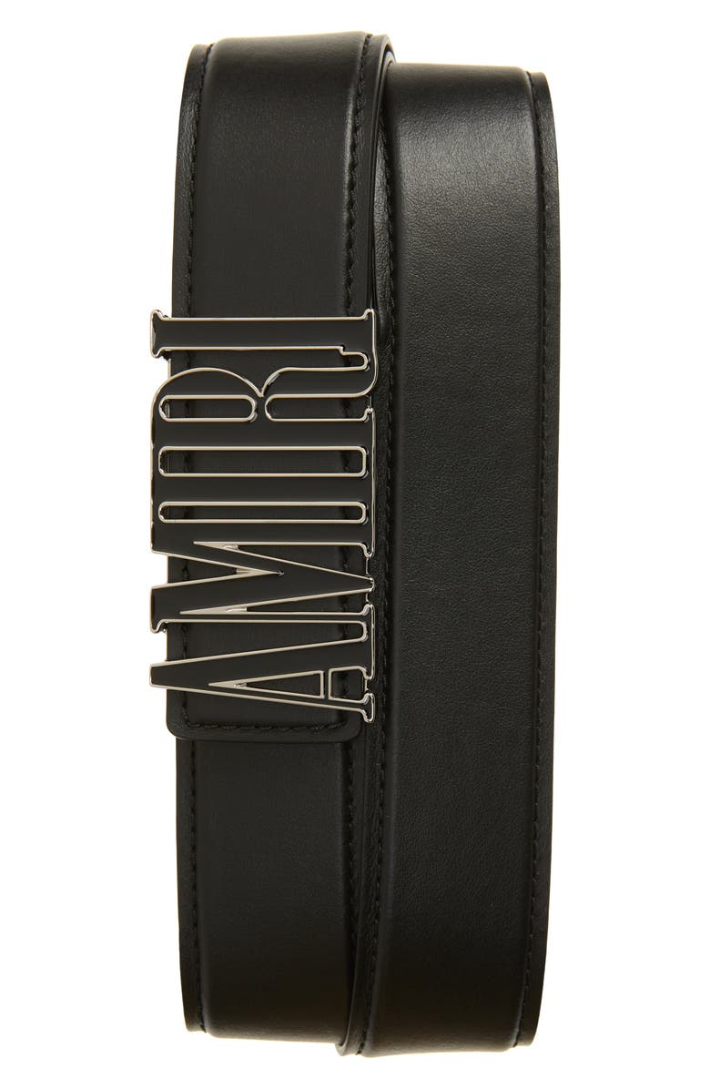 AMIRI Logo Leather Belt, Main, color, BLACK