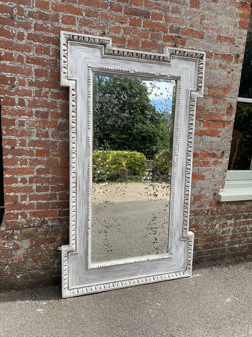 An Absolutely stunning large Antique 19th Century carved wood and gesso painted highly decorative French shaped Mirror
