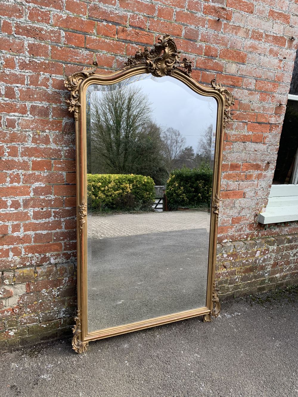 An Exceptional large Antique French 19th Century carved wood & gesso shaped top original gilt Mirror.