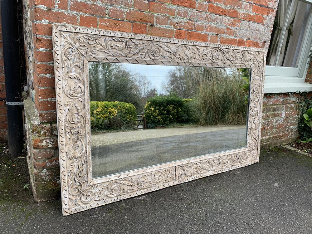 An Exceptional Large Antique French 19th decorative carved wood painted Mirror.