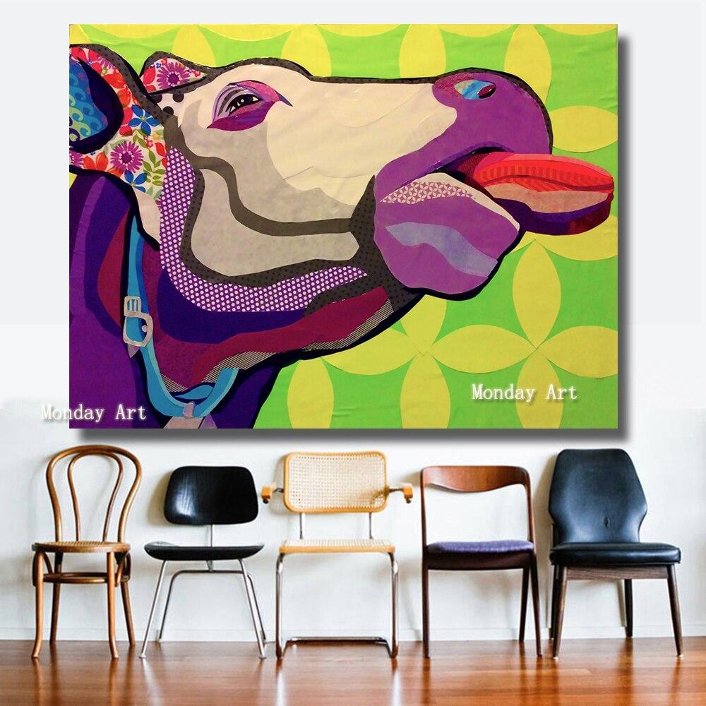 Animal Hand Painted Canvas oil Paintings Modern Cow cartoon Painting Decoration Wall Art home Decoration