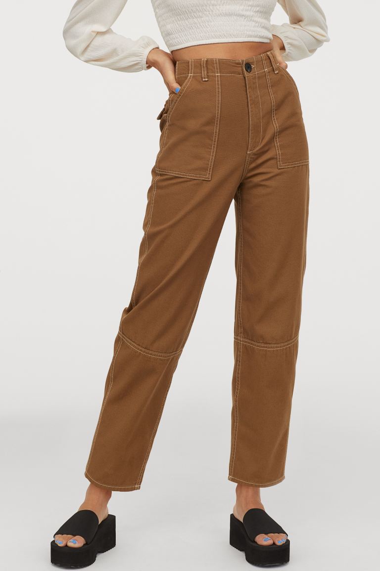 Ankle-length Cotton Pants - Light brown - Ladies