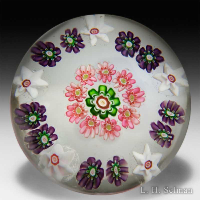 Antique Clichy miniature spaced concentric millefiori glass paperweight. by Clichy