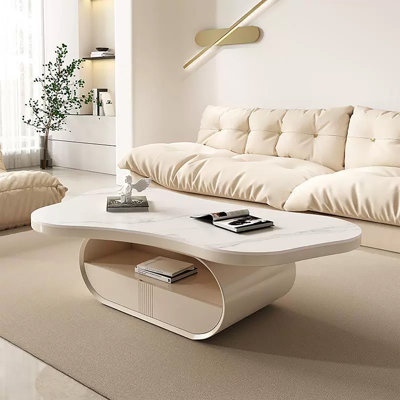 Anzal 51" White Coffee Table, Cloud Shaped, with Drawers, Sintered Stone Top