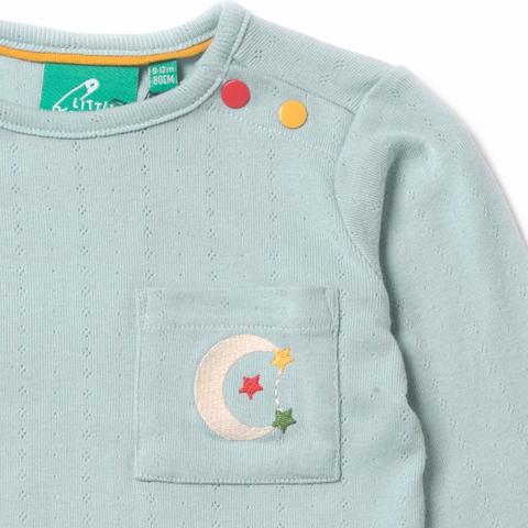 Aqua Sky Pointelle Long Sleeve tshirt made from Organic Fairtrade Cotton
