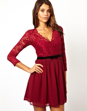 ASOS 3/4 Sleeve Lace Scallop Skater Dress