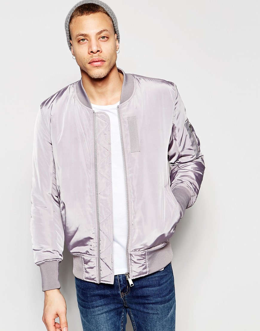 ASOS Bomber Jacket With MA1 Pocket In Gray
