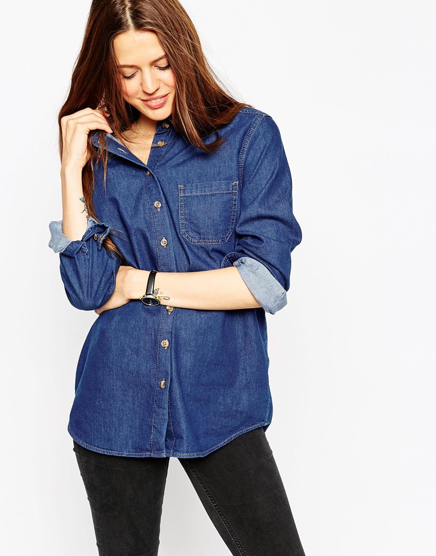 ASOS Denim Boyfriend Shirt In Rich Blue